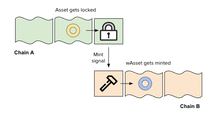 Returning to this bridge analogy, most cross-chain bridges work through a process of “locking and minting”. You move the asset into a specialized bridge contract on Chain A, where it is “locked in place” and ceases to circulate on Chain A. Chain B then mints a new version of the asset. That new version is free to move around Chain B, until the asset owner wants to bridge it back. The asset on Chain B is then burned, and the asset on Chain A is “unlocked”.
